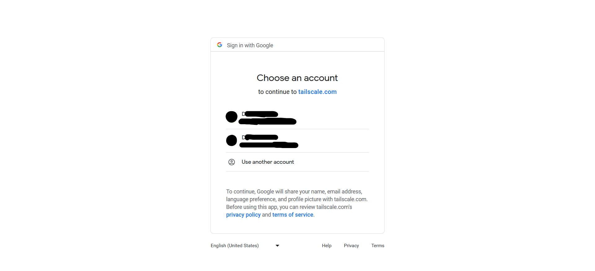 - If you chose to use Google, you’ll select the account you want to use, and then agree to let Tailscale sign you in with your Google account.